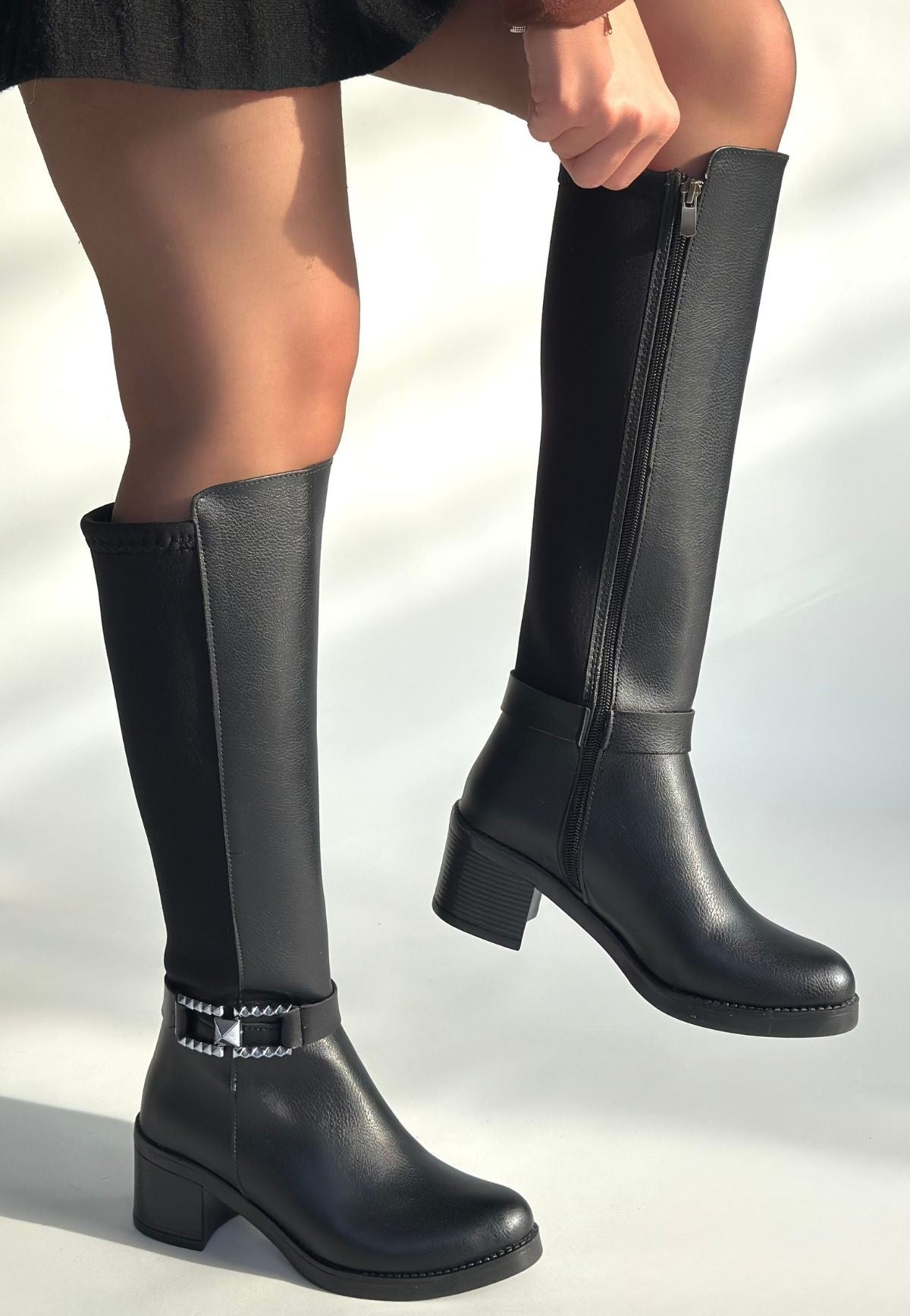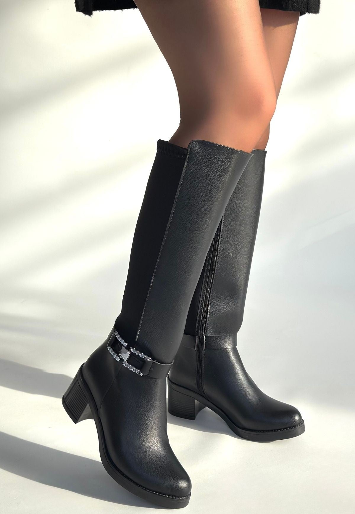 Detay: Topuklu Yandan Fermuarlı Arka Kısmı Streç Diz Altı Çizme