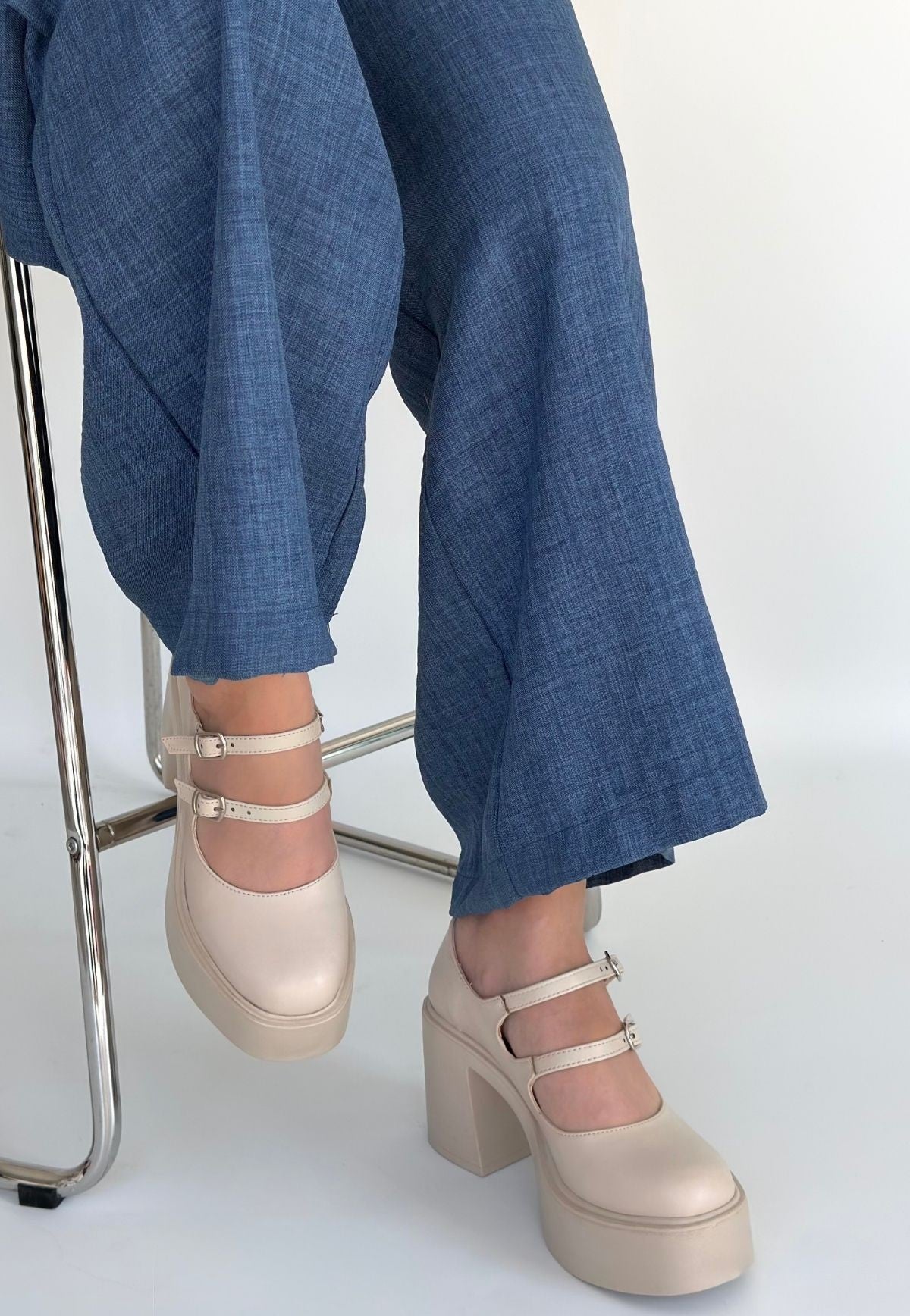 Jarlo Bej Cilt Dolgu Topuk Ayakkabı