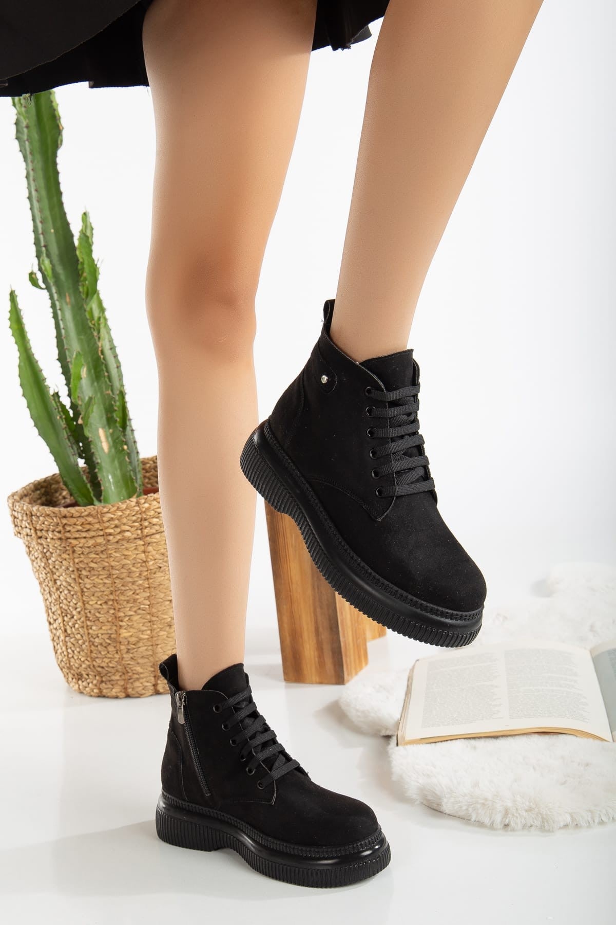 Jiwa Siyah Süet Bağcıklı Bot