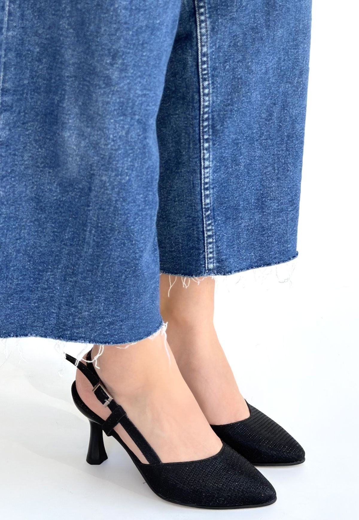Joga Siyah Saten Simli Topuklu Ayakkabı