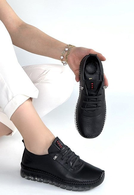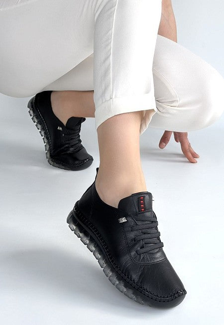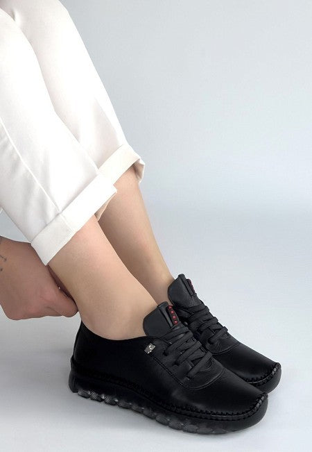 Kitta Siyah Deri Bağcıklı Spor Ayakkabı