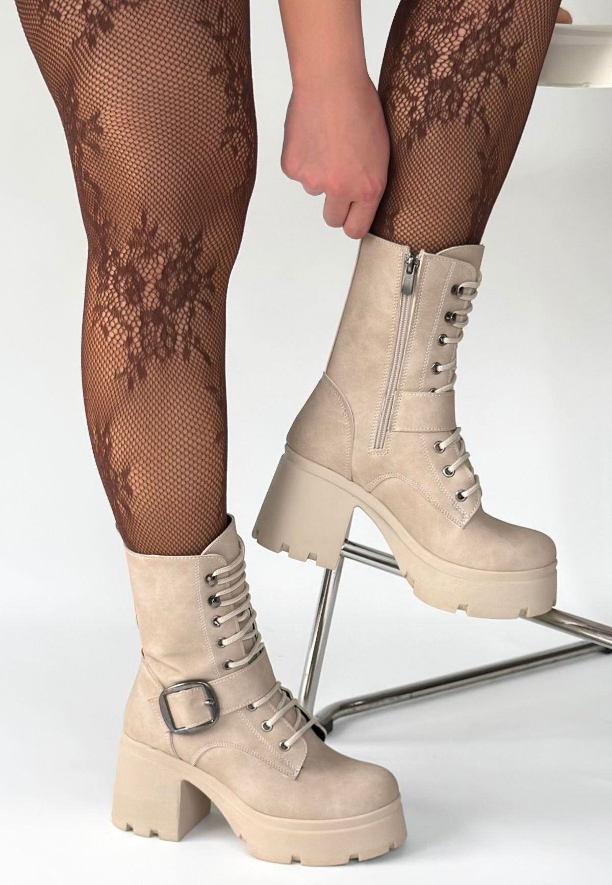 Linma Bej Nubuk Bağcıklı Topuklu Bot