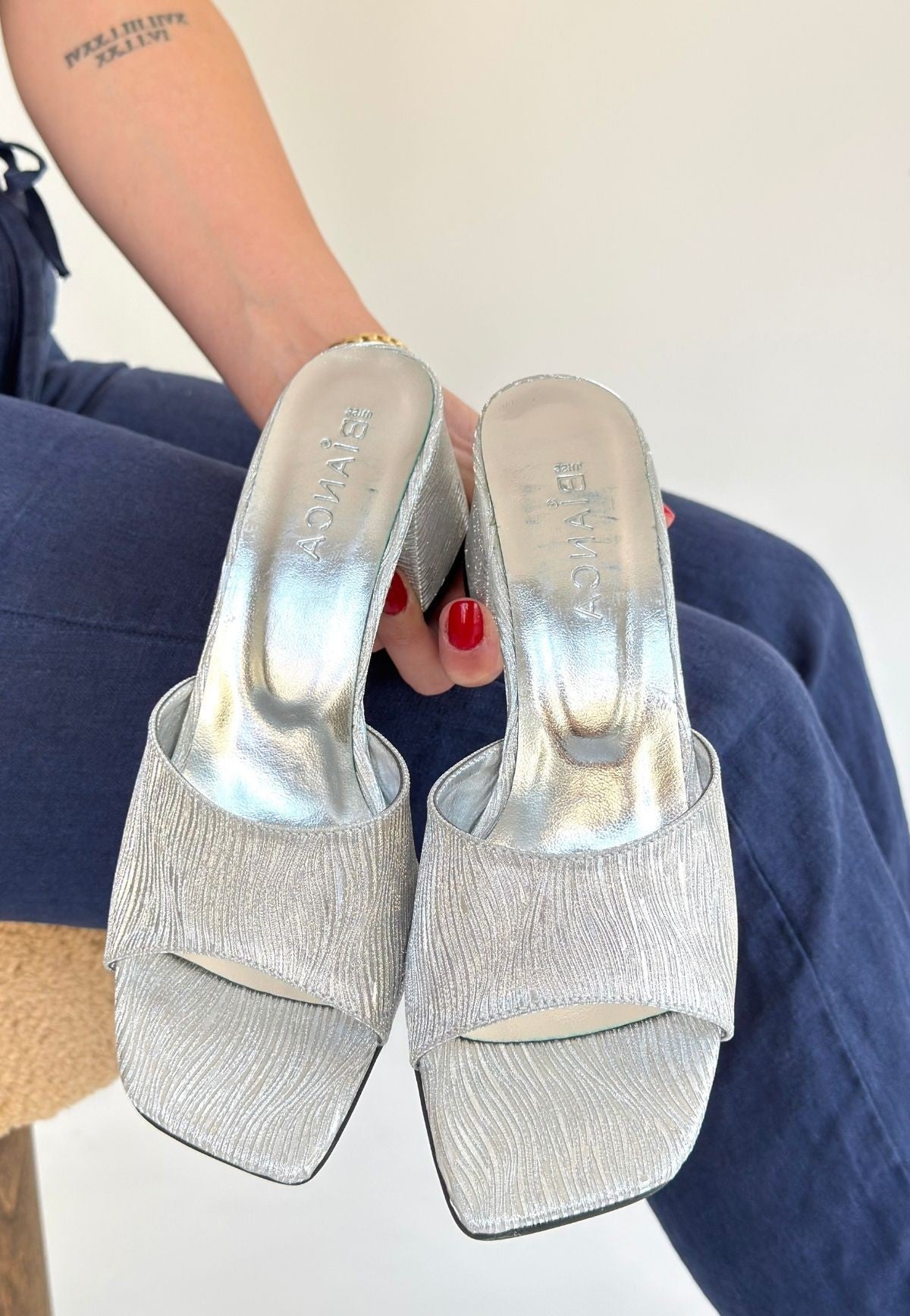 Luart Gümüş Simli Topuklu Terlik