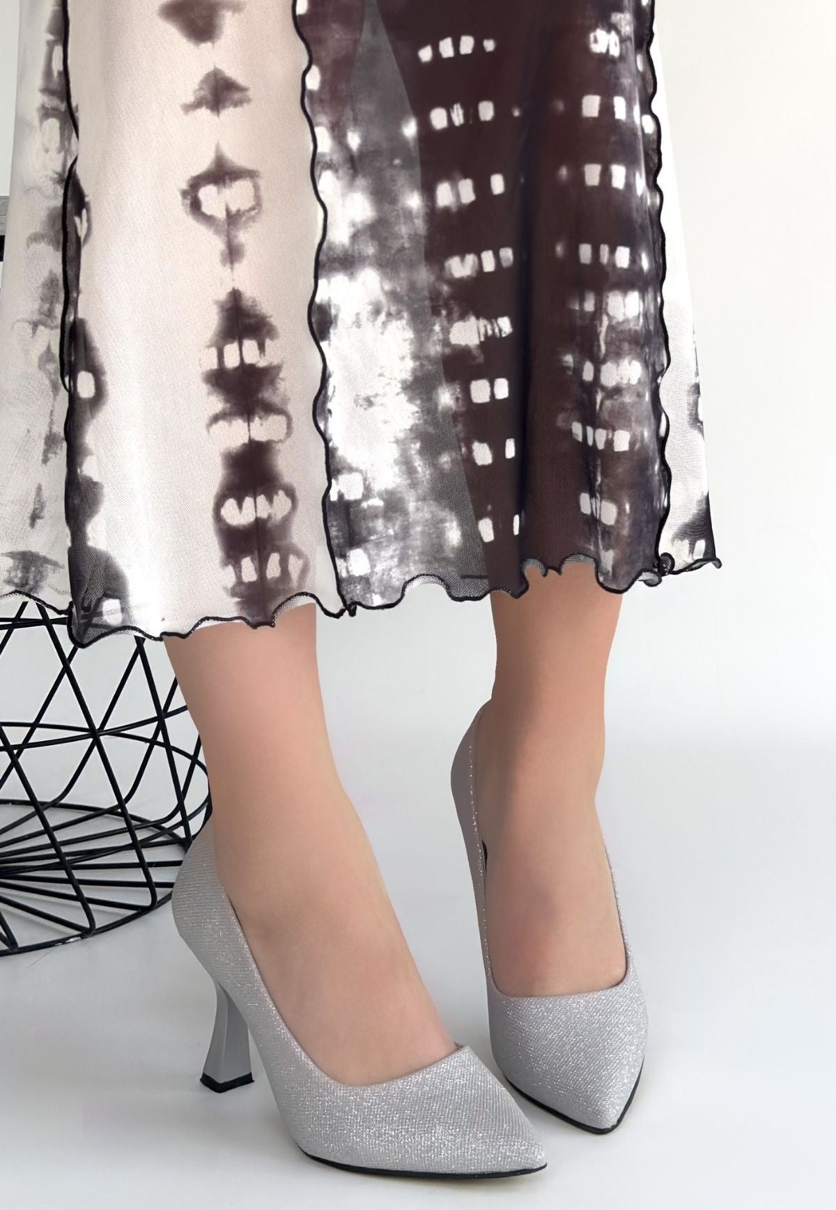 Meyli Gümüş Saten Simli Topuklu Ayakkabı