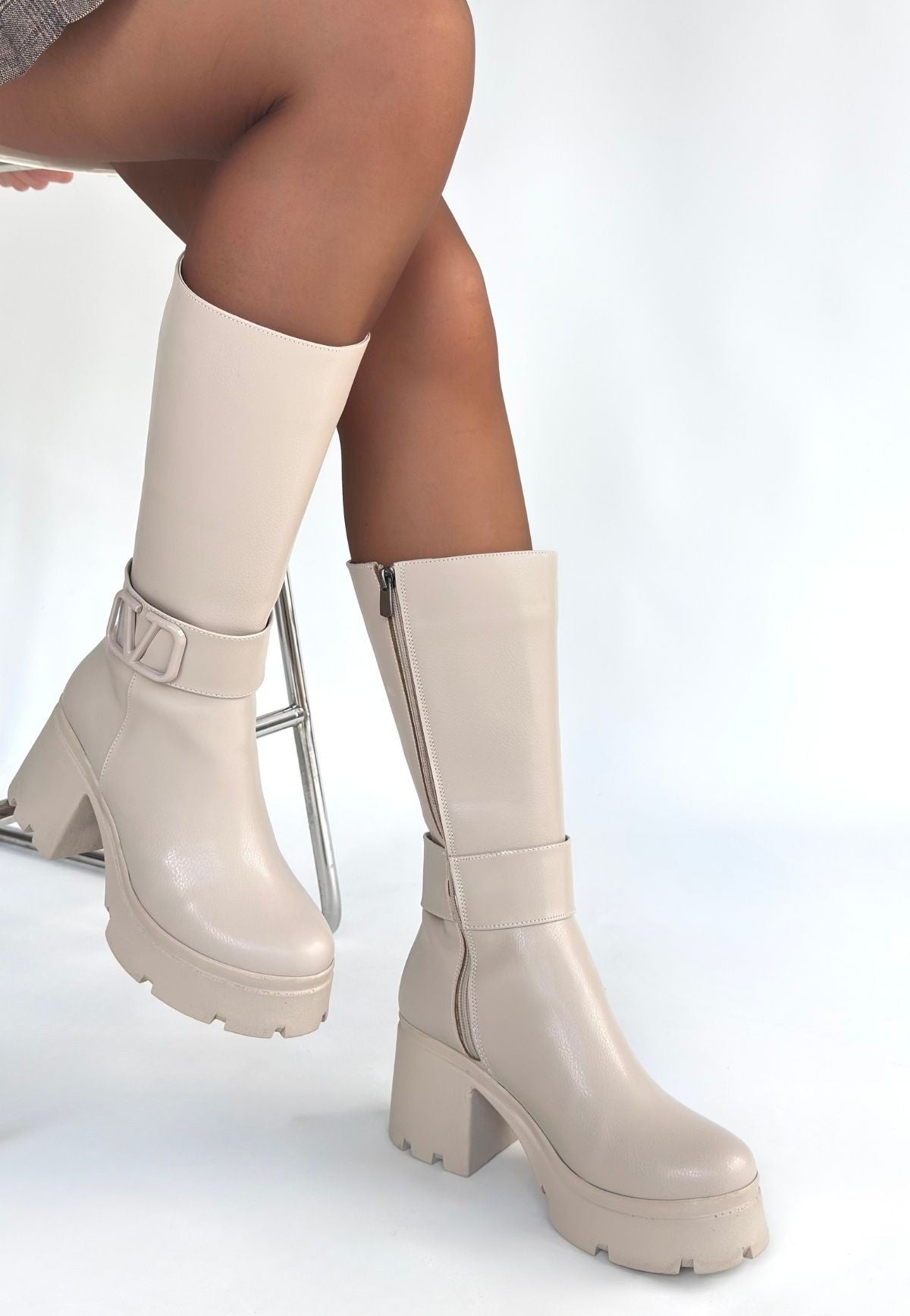 Moki Bej Cilt Topuklu Çizme