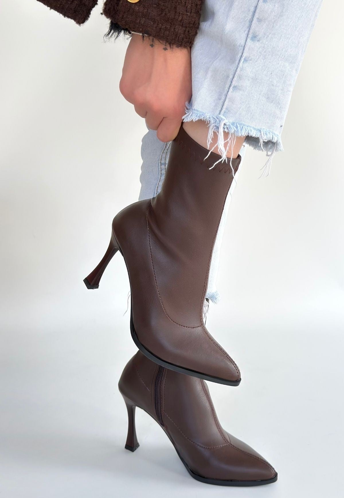 Orjen Kahverengi Cilt Streç Topuklu Bot