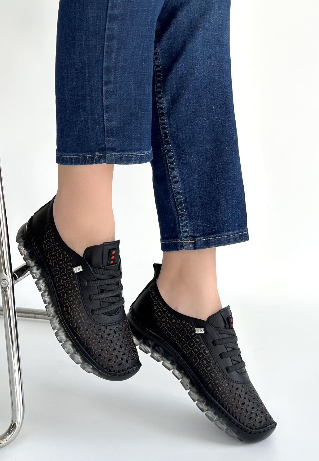 Otja Siyah Deri Lazerli Bağcıklı Spor Ayakkabı