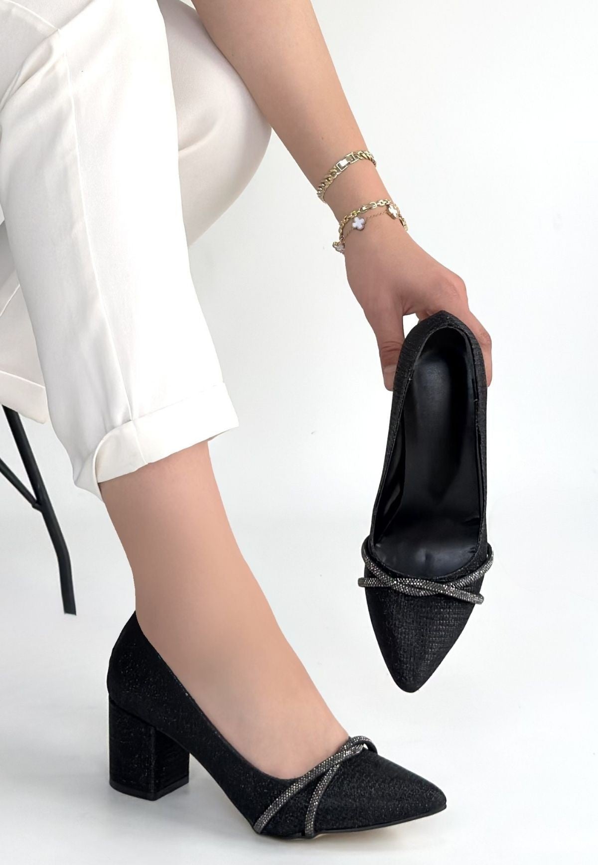 Rewin Siyah Simli Cilt Topuklu Ayakkabı