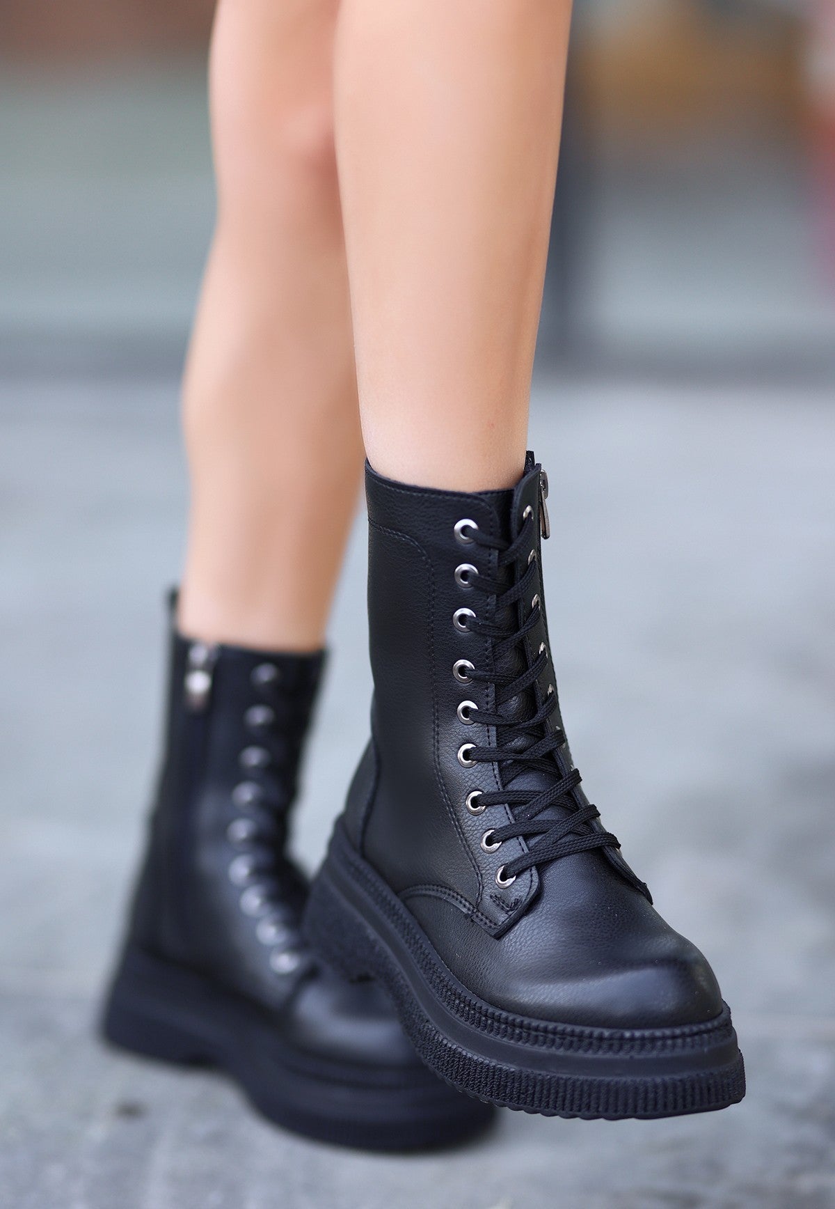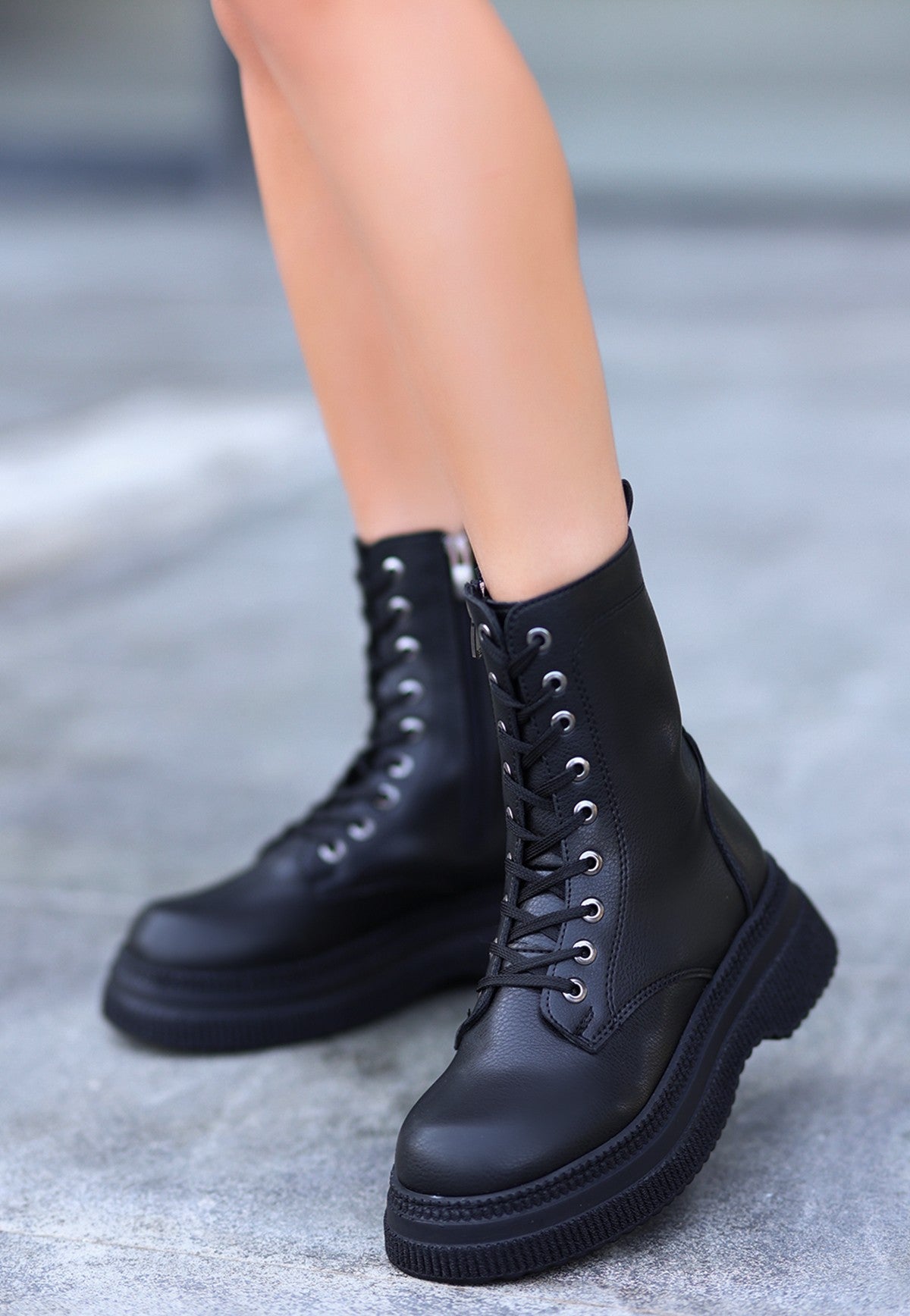 Roxan Siyah Cilt Bağcıklı Bot