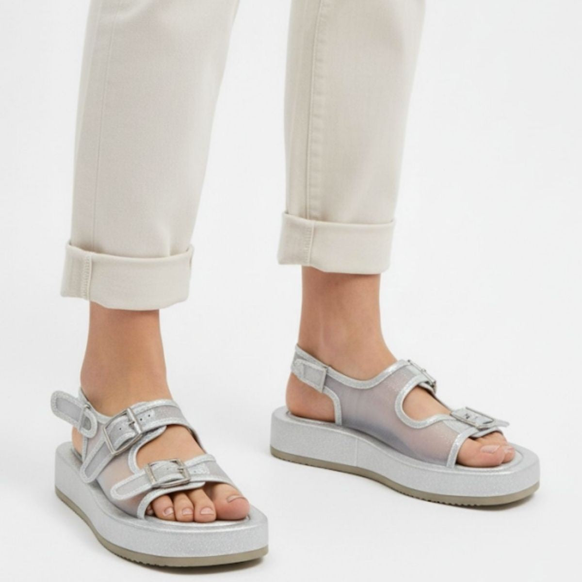 Sinna Gümüş Cilt Tül Detaylı Sandalet