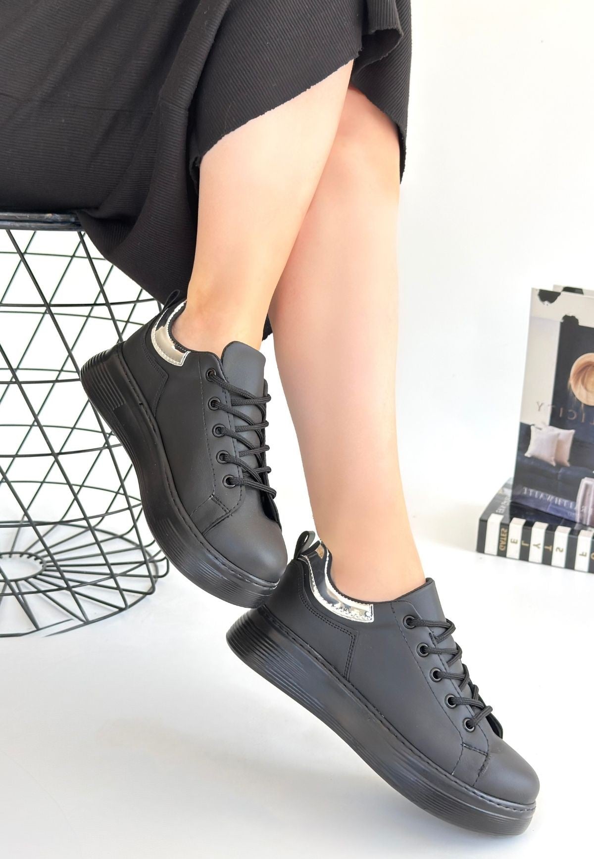 Sofio Siyah Cilt Bağcıklı Spor Ayakkabı