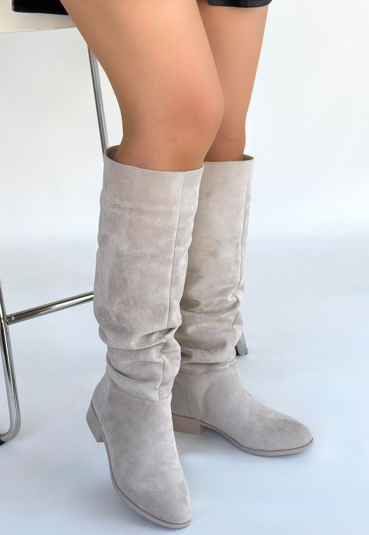Winda Bej Süet Körüklü Çizme