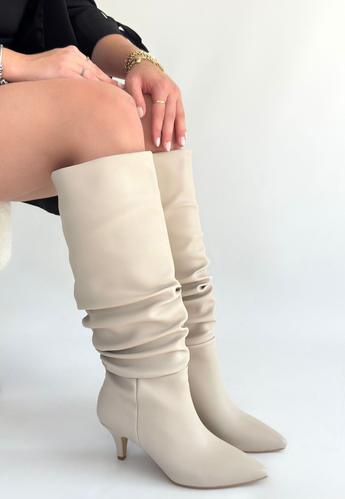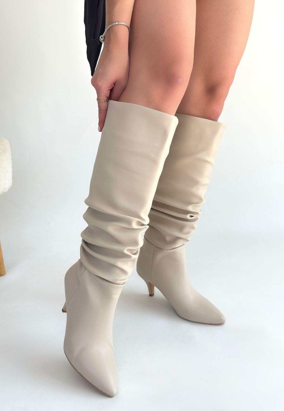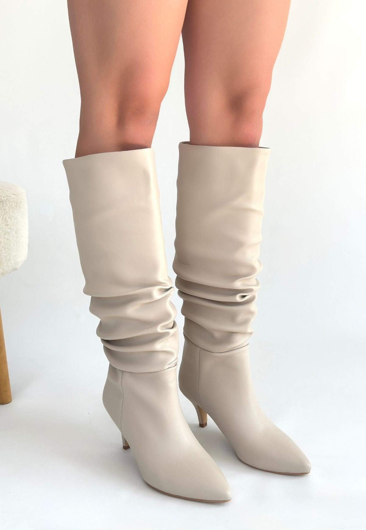 Zelya Bej Cilt Topuklu Çizme