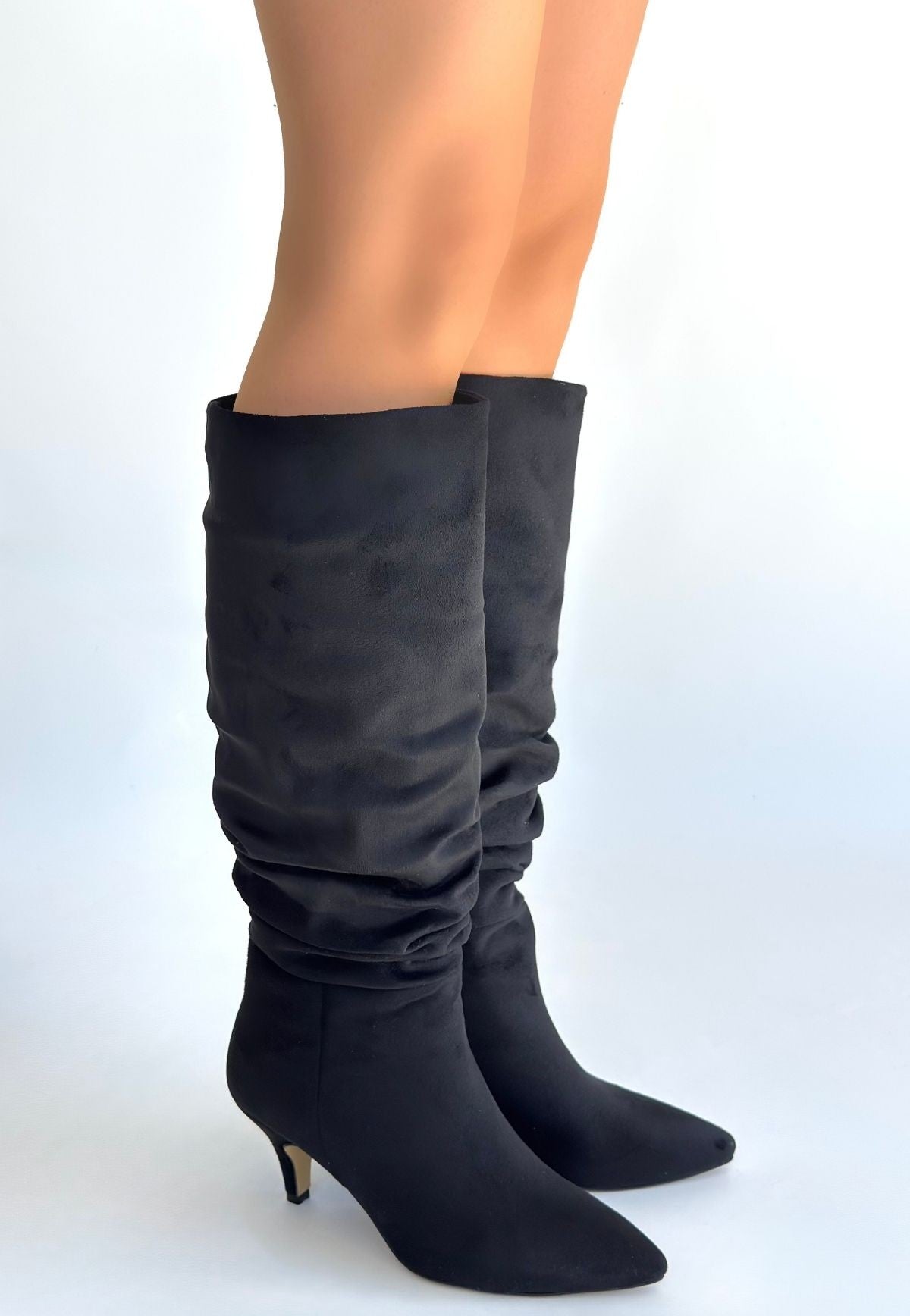 Zelya Siyah Süet Topuklu Çizme